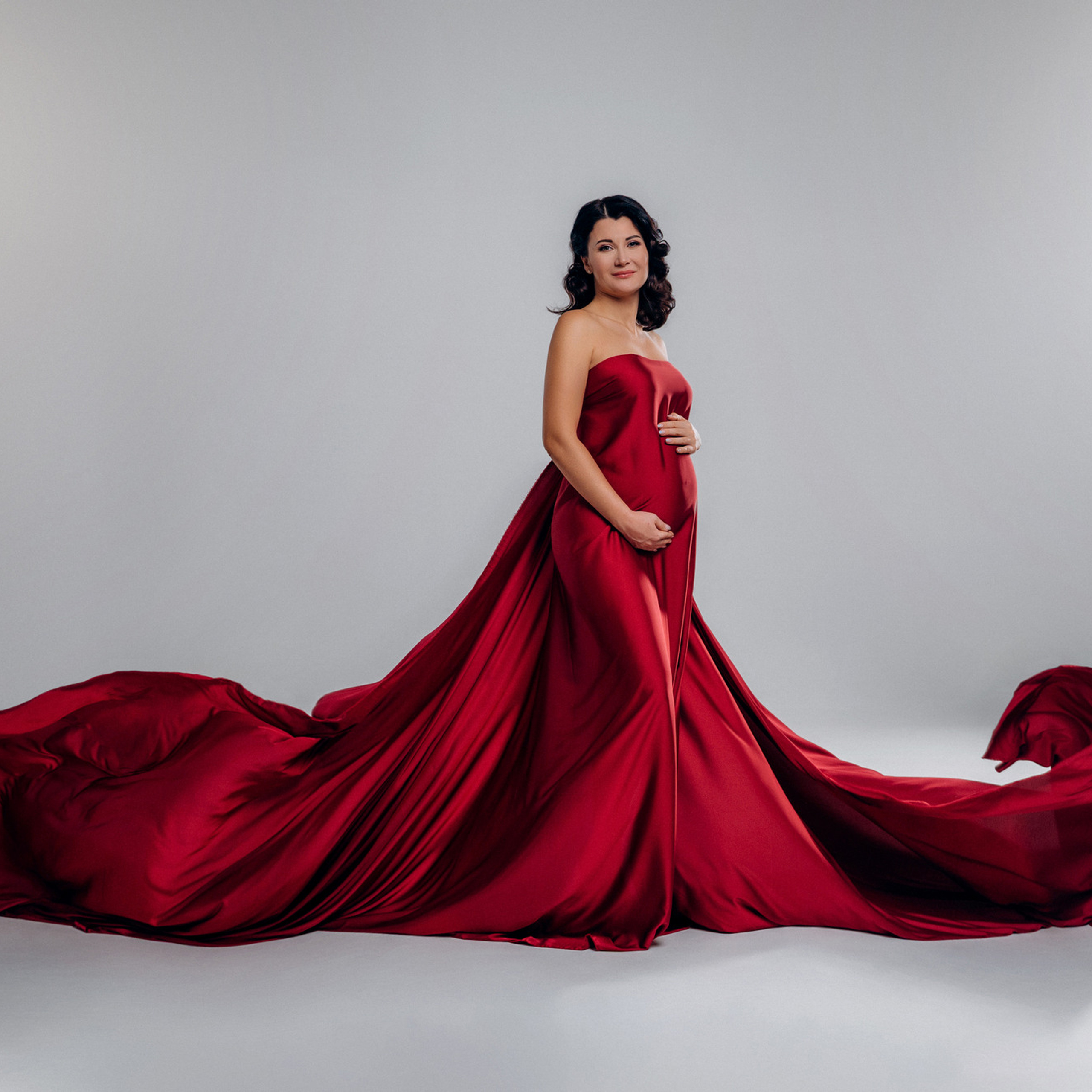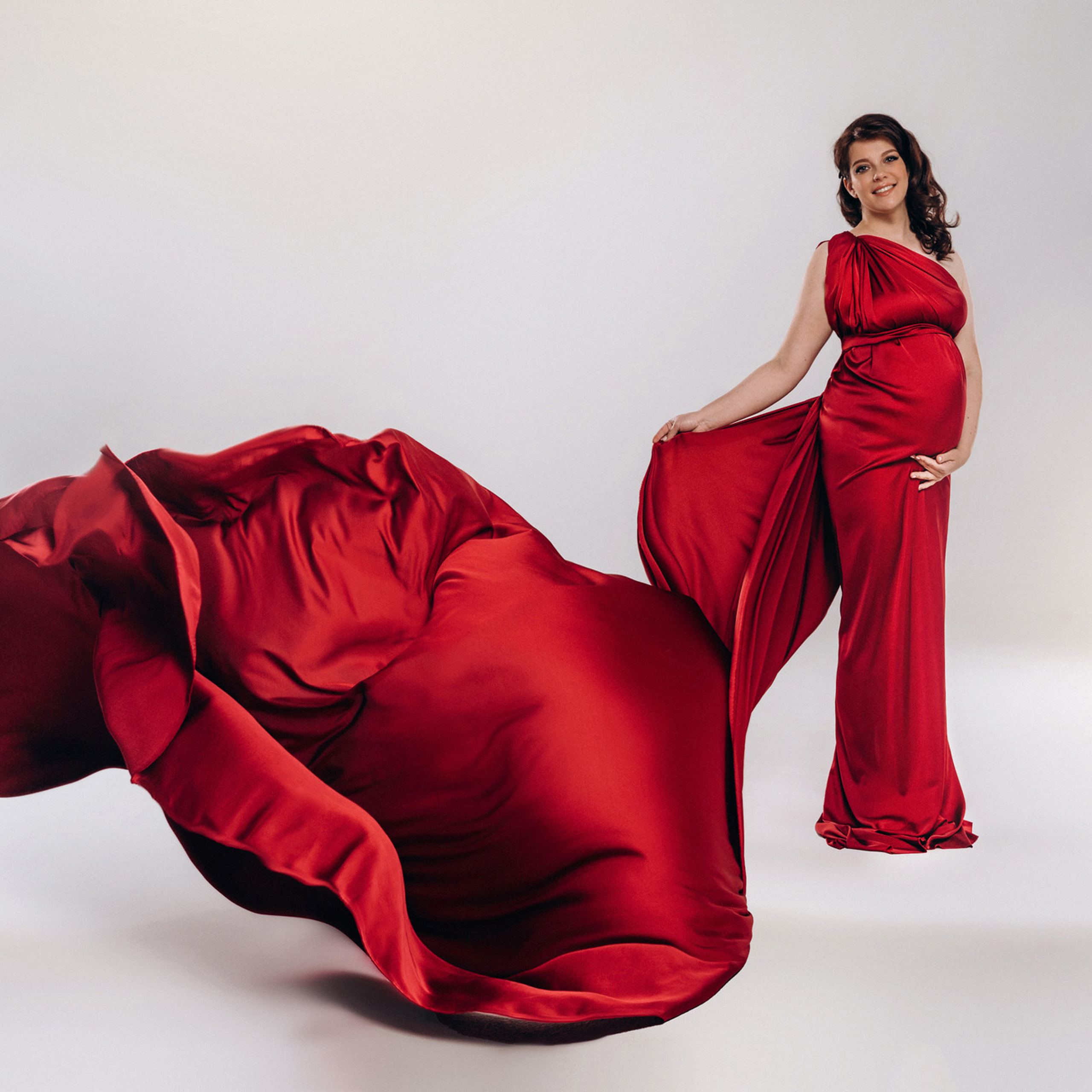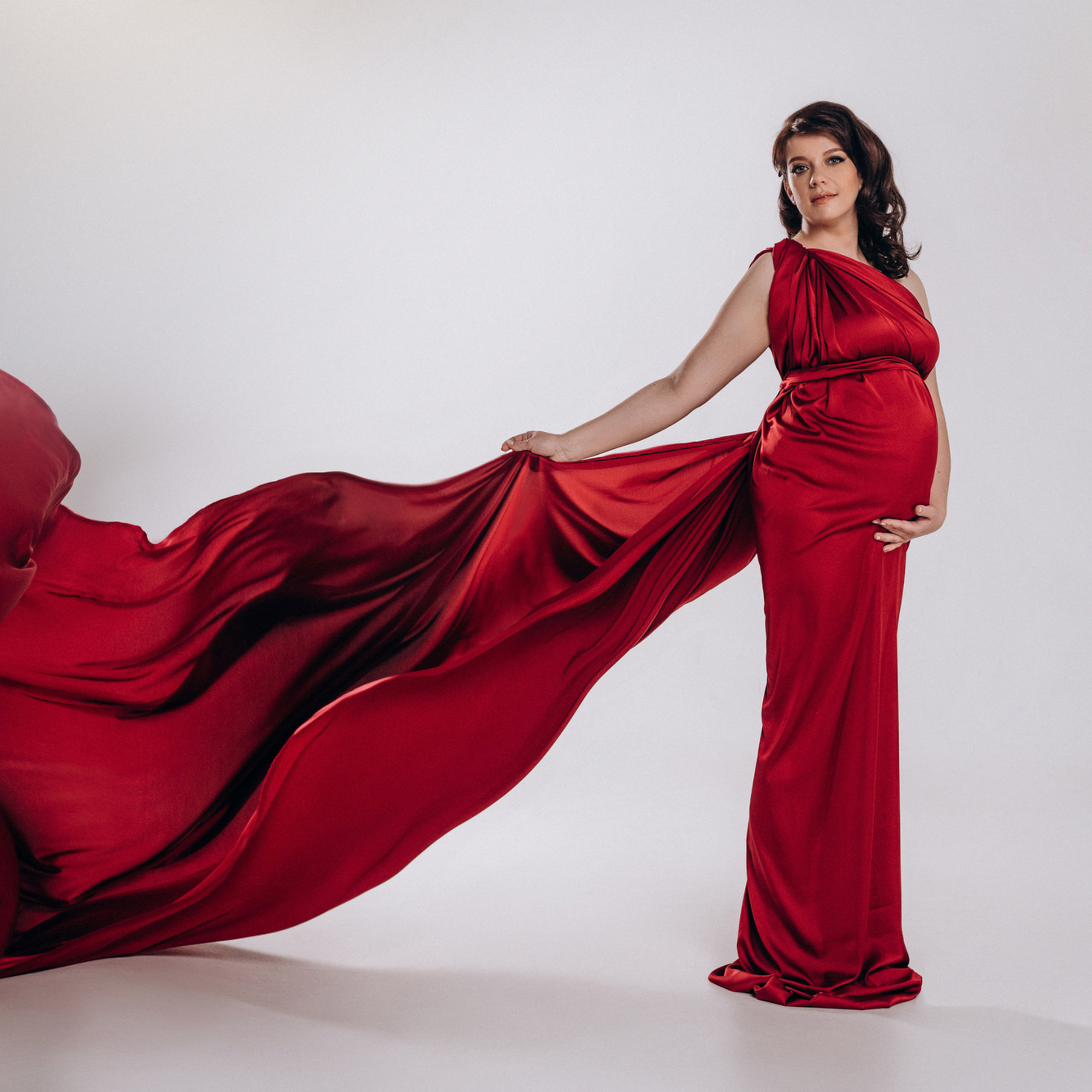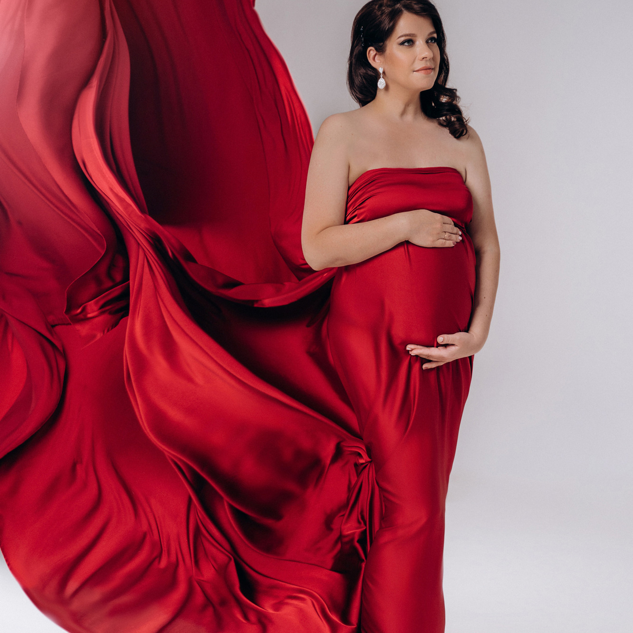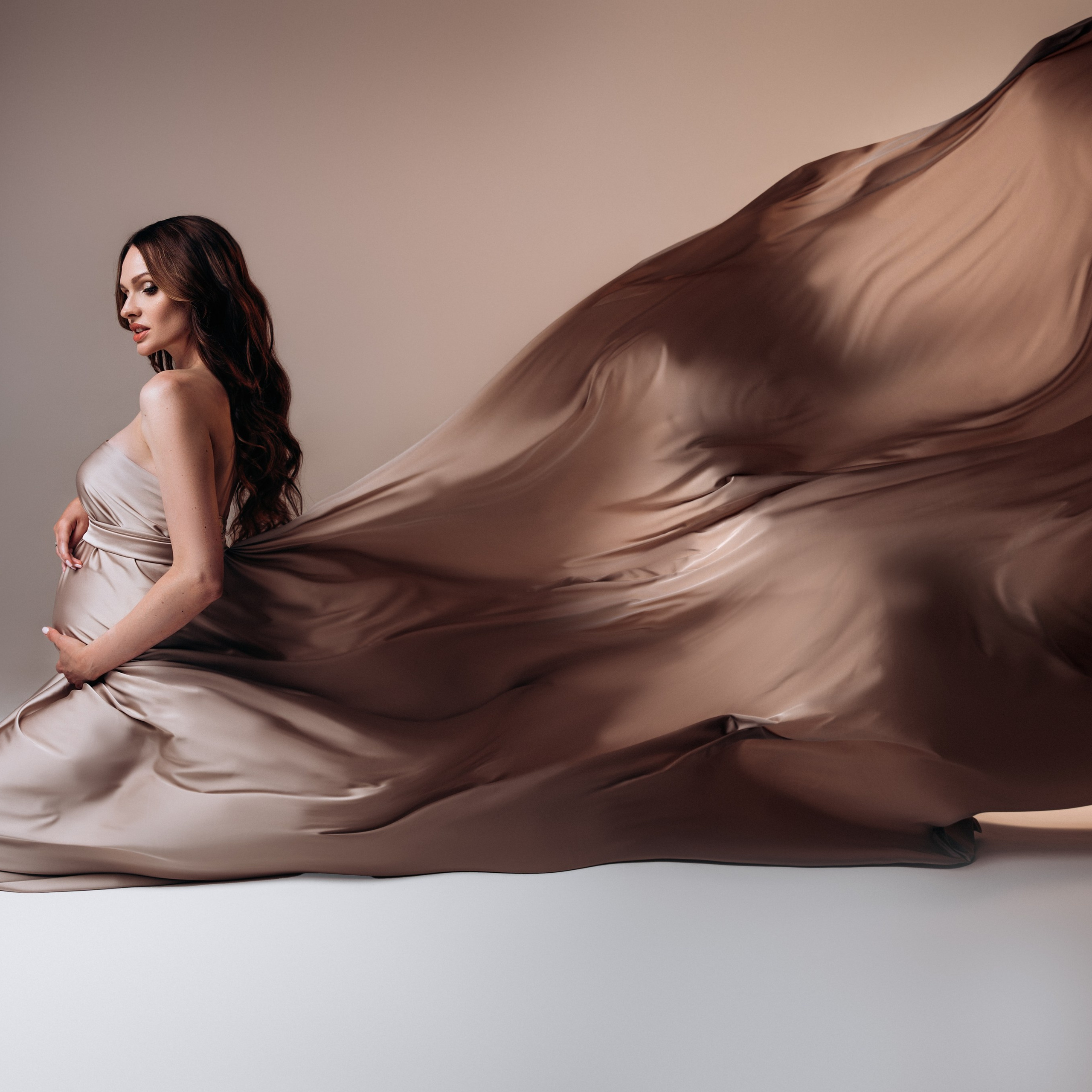 Нереально красивой получается ФОТОСЕССИЯ БЕРЕМЕННОСТИ на однотонном фоне и в летящих тканях в стиле Vogue. Такие фотографии на долго остаются вне времени.