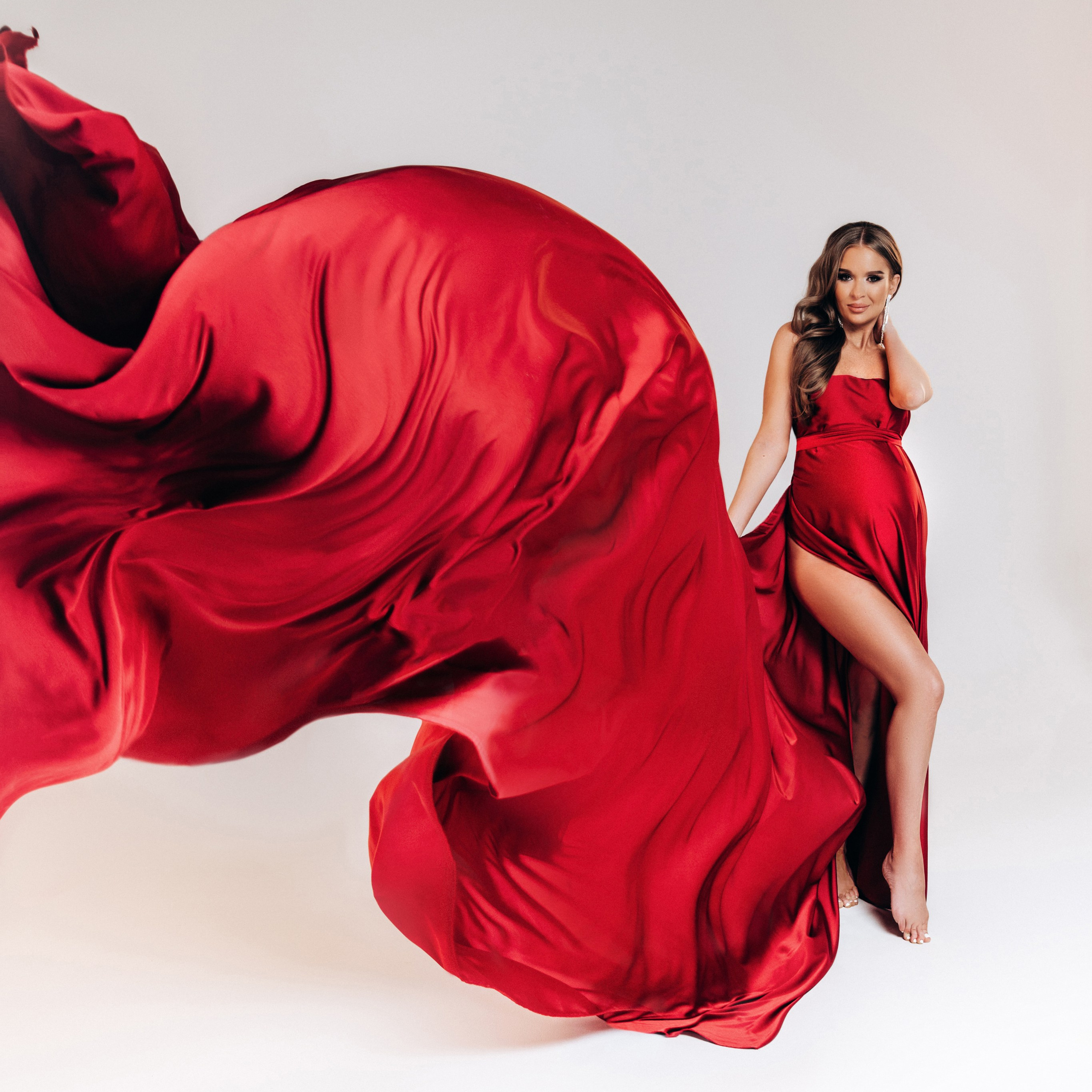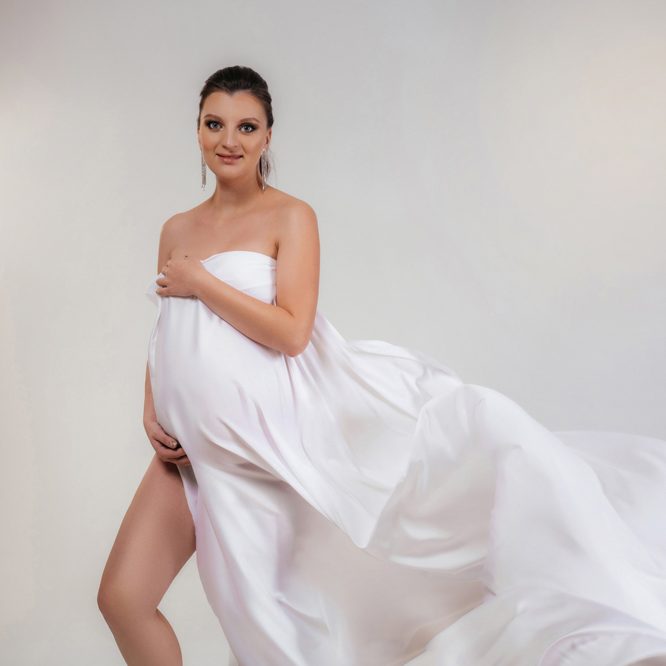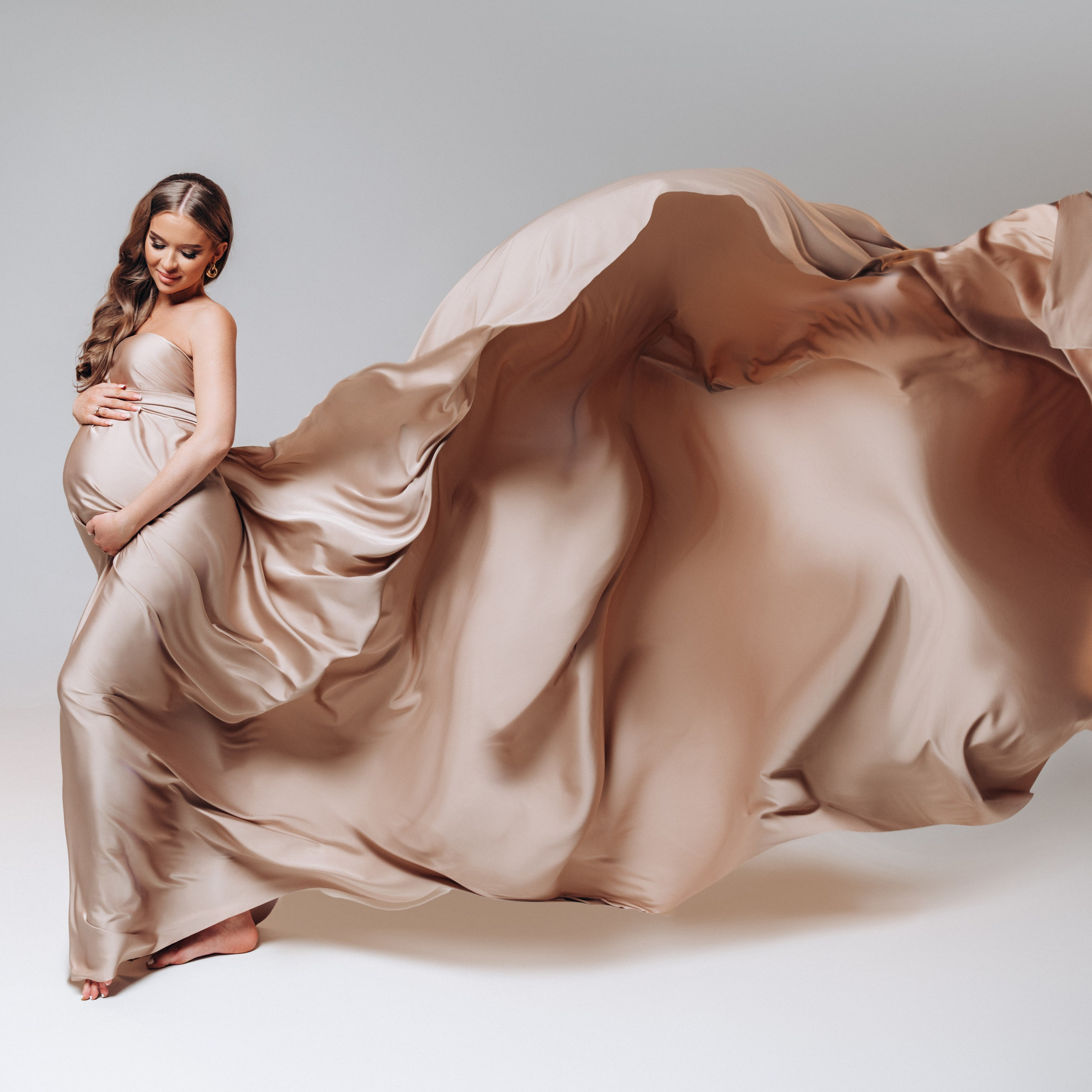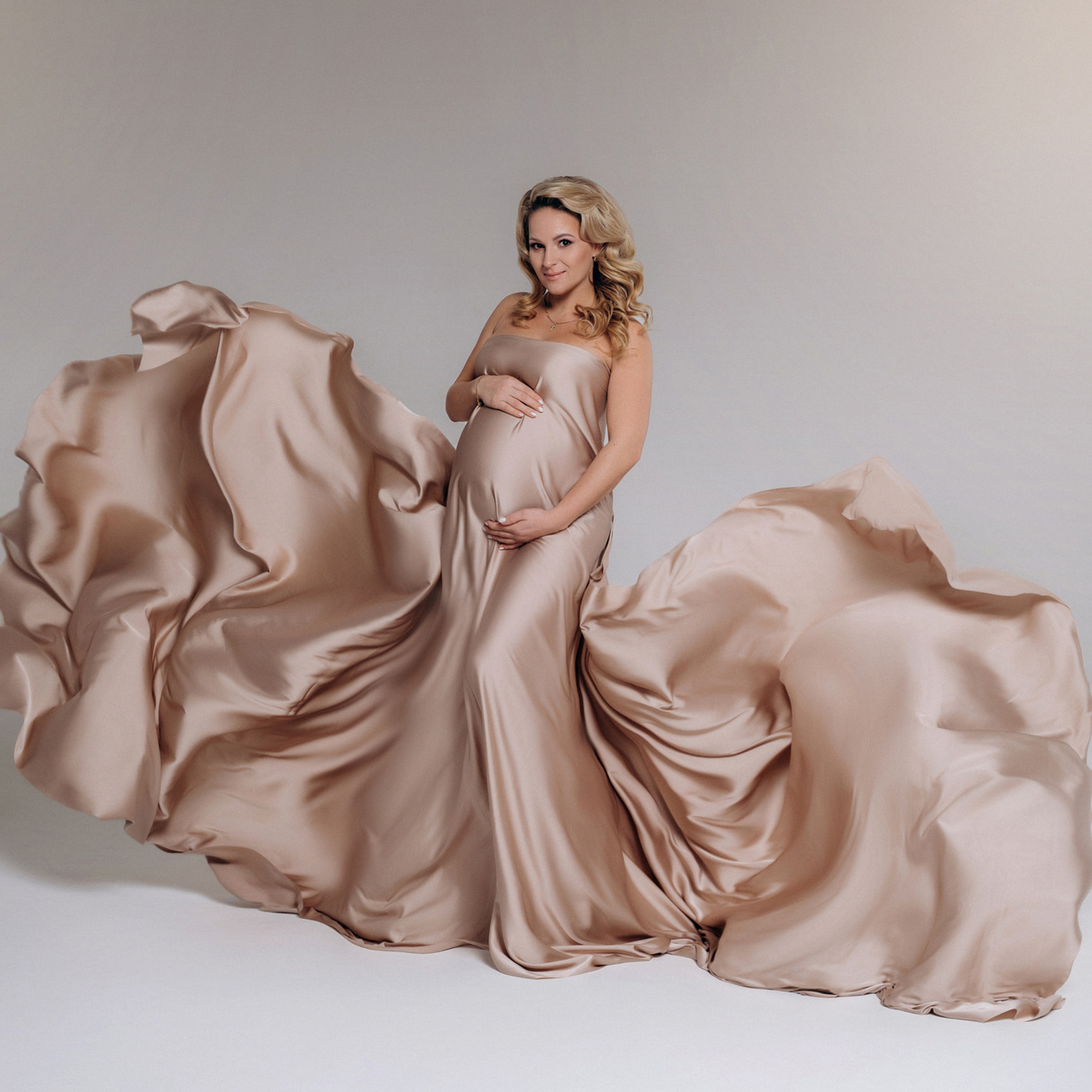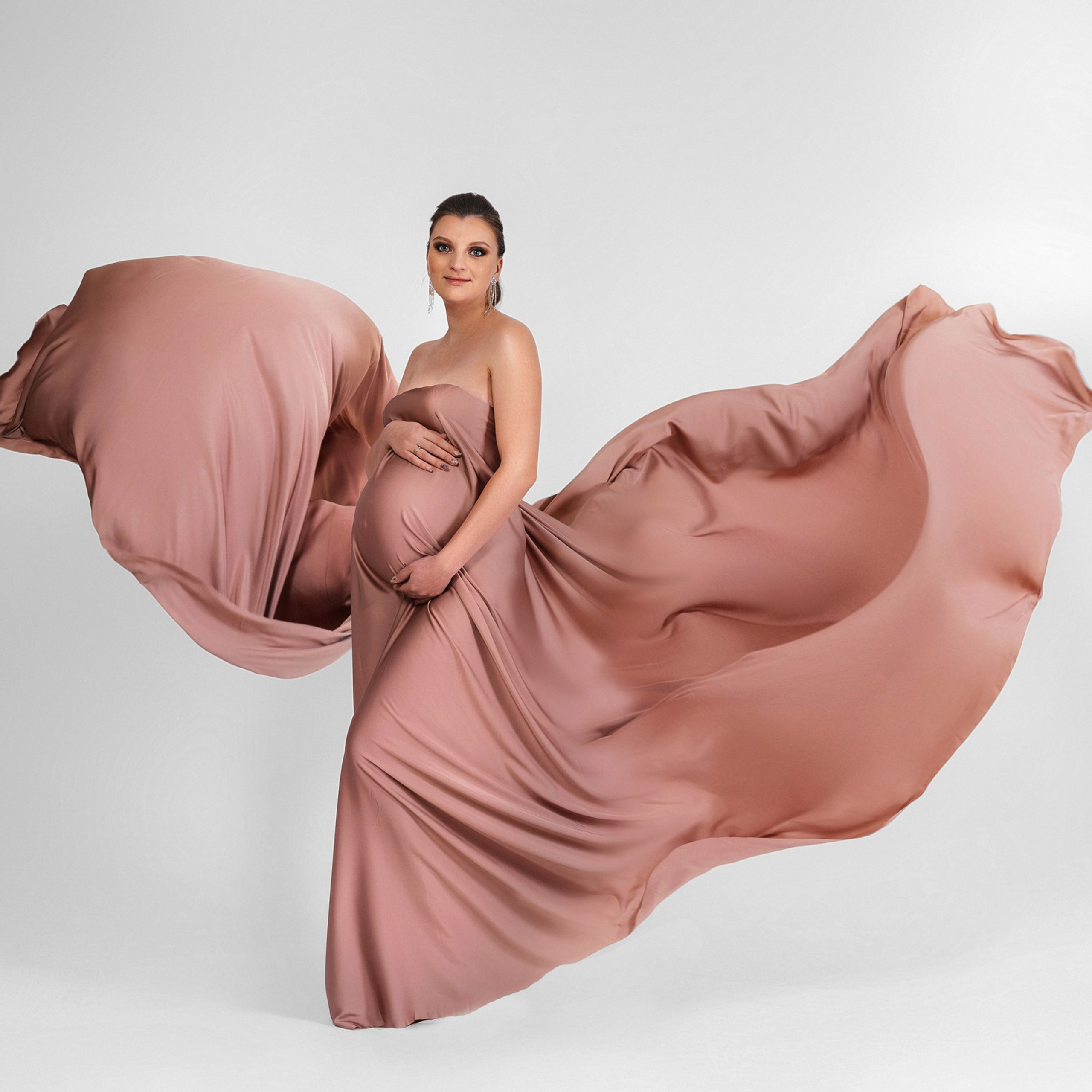 Нереально красивой получается ФОТОСЕССИЯ БЕРЕМЕННОСТИ на однотонном фоне и в летящих тканях в стиле Vogue. Такие фотографии на долго остаются вне времени.
