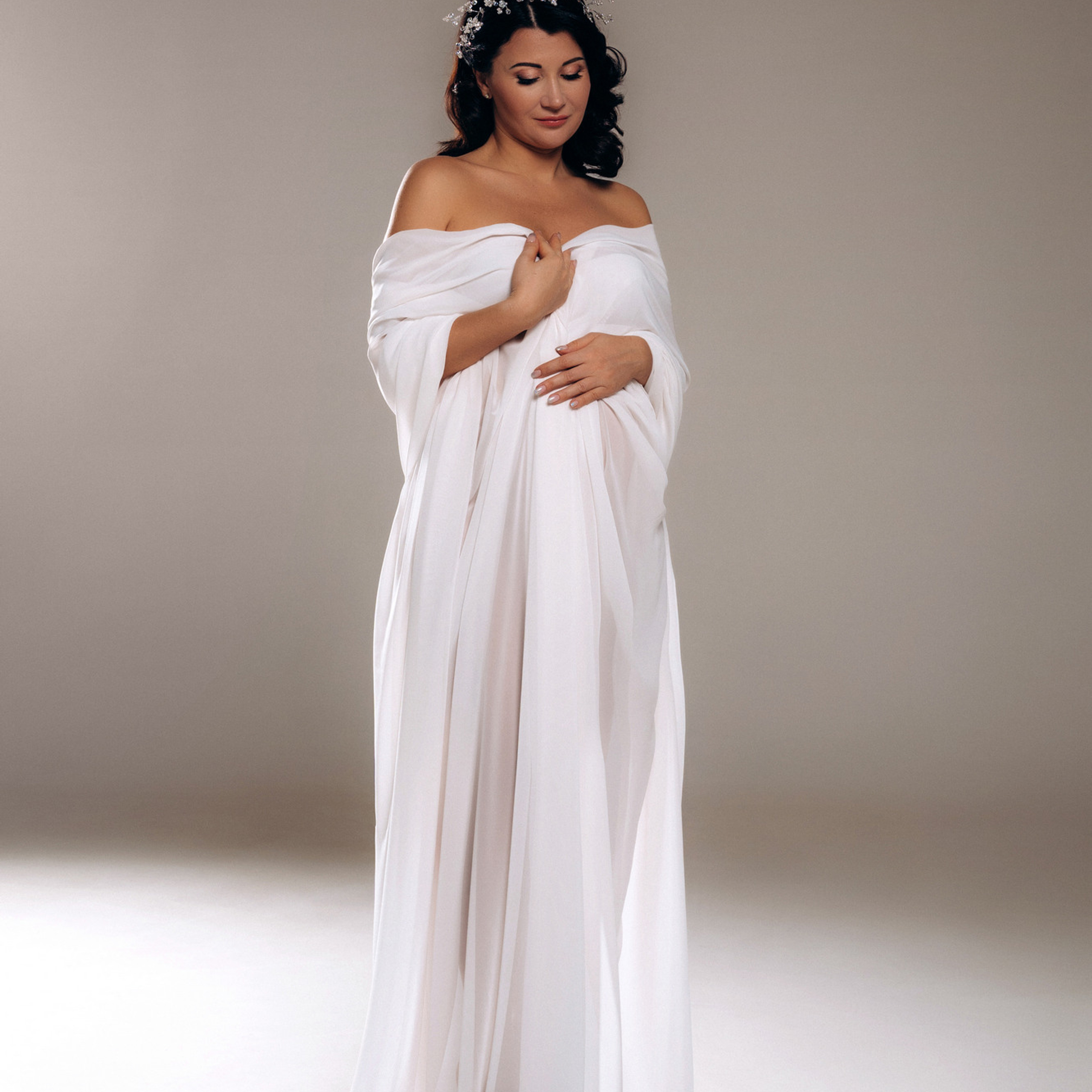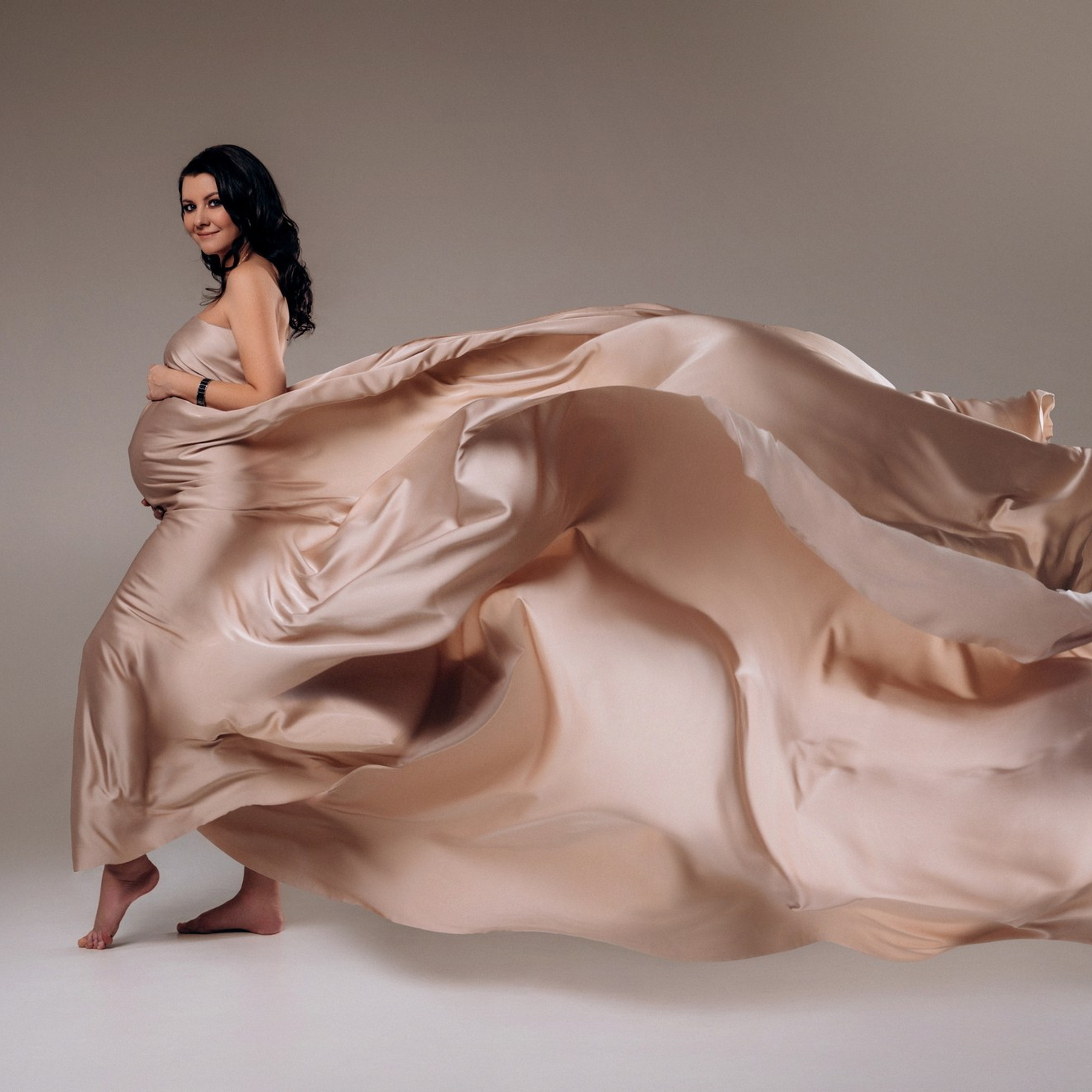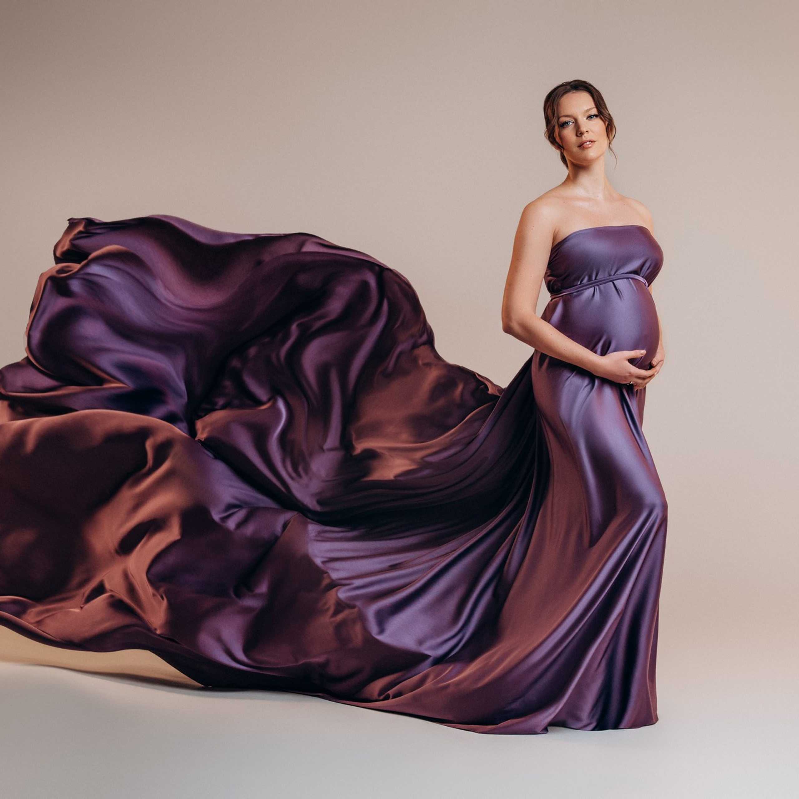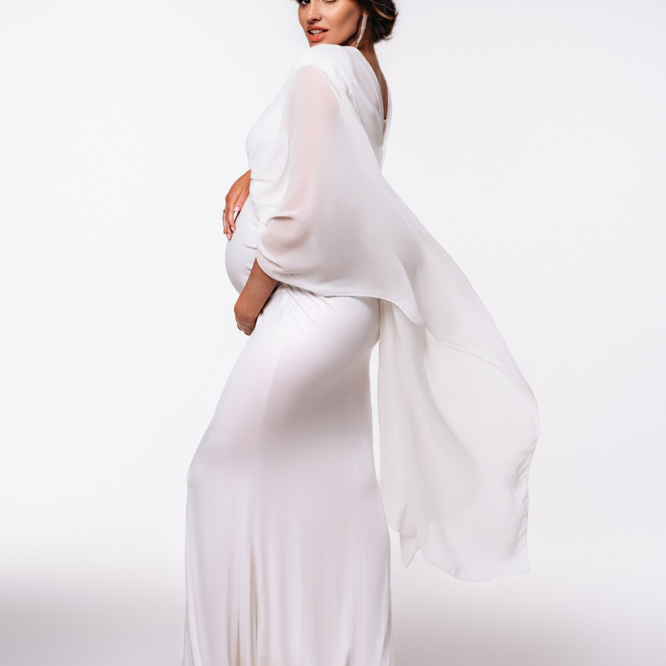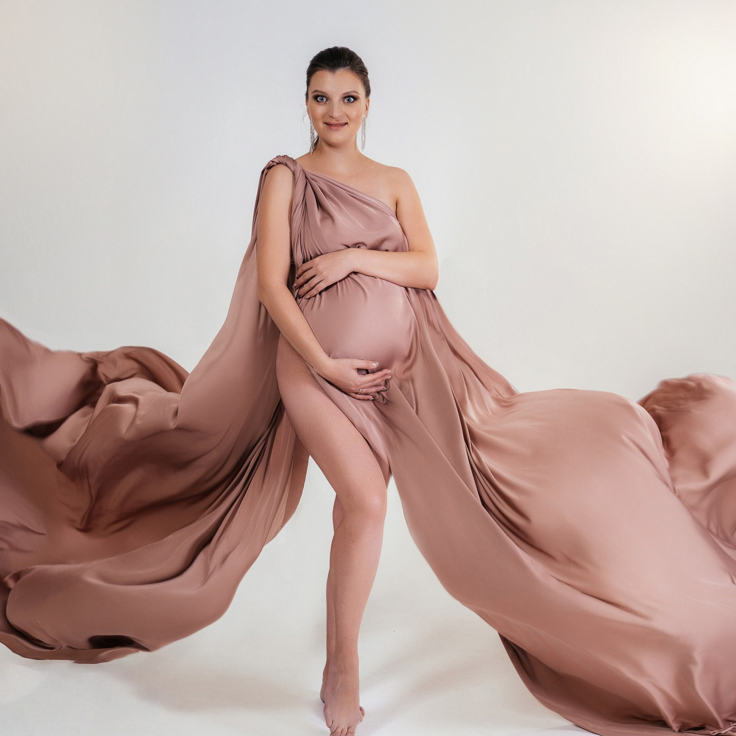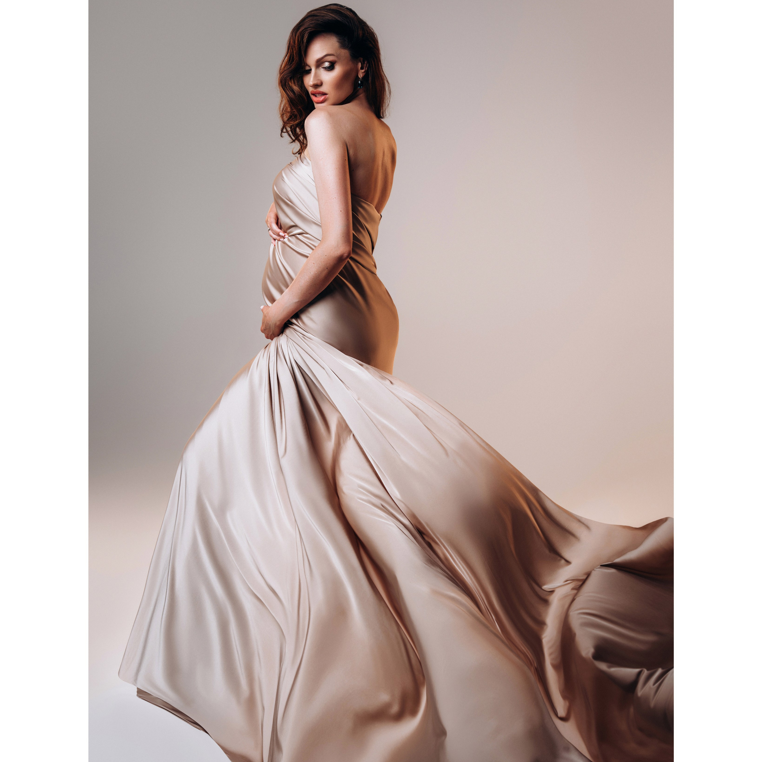 Нереально красивой получается ФОТОСЕССИЯ БЕРЕМЕННОСТИ на однотонном фоне и в летящих тканях в стиле Vogue. Такие фотографии на долго остаются вне времени.