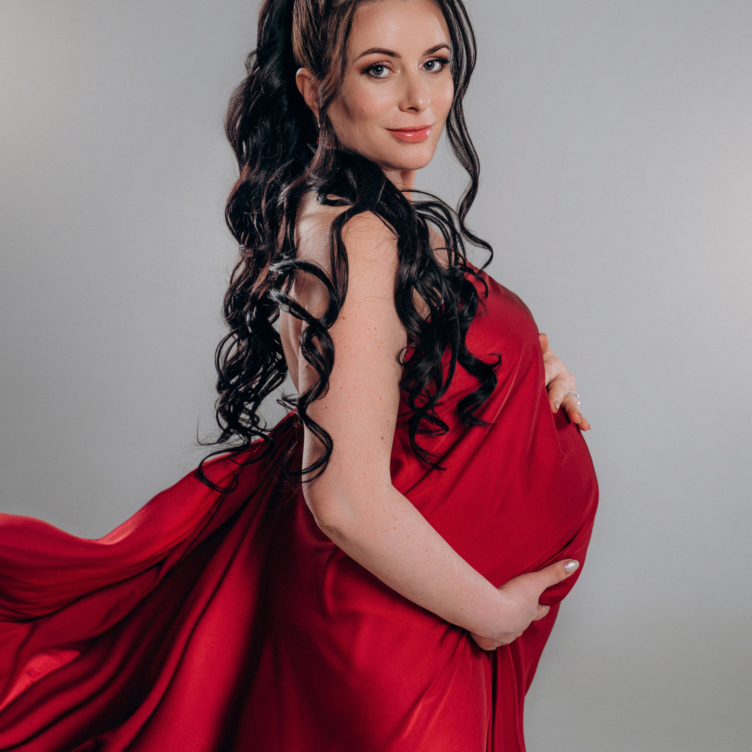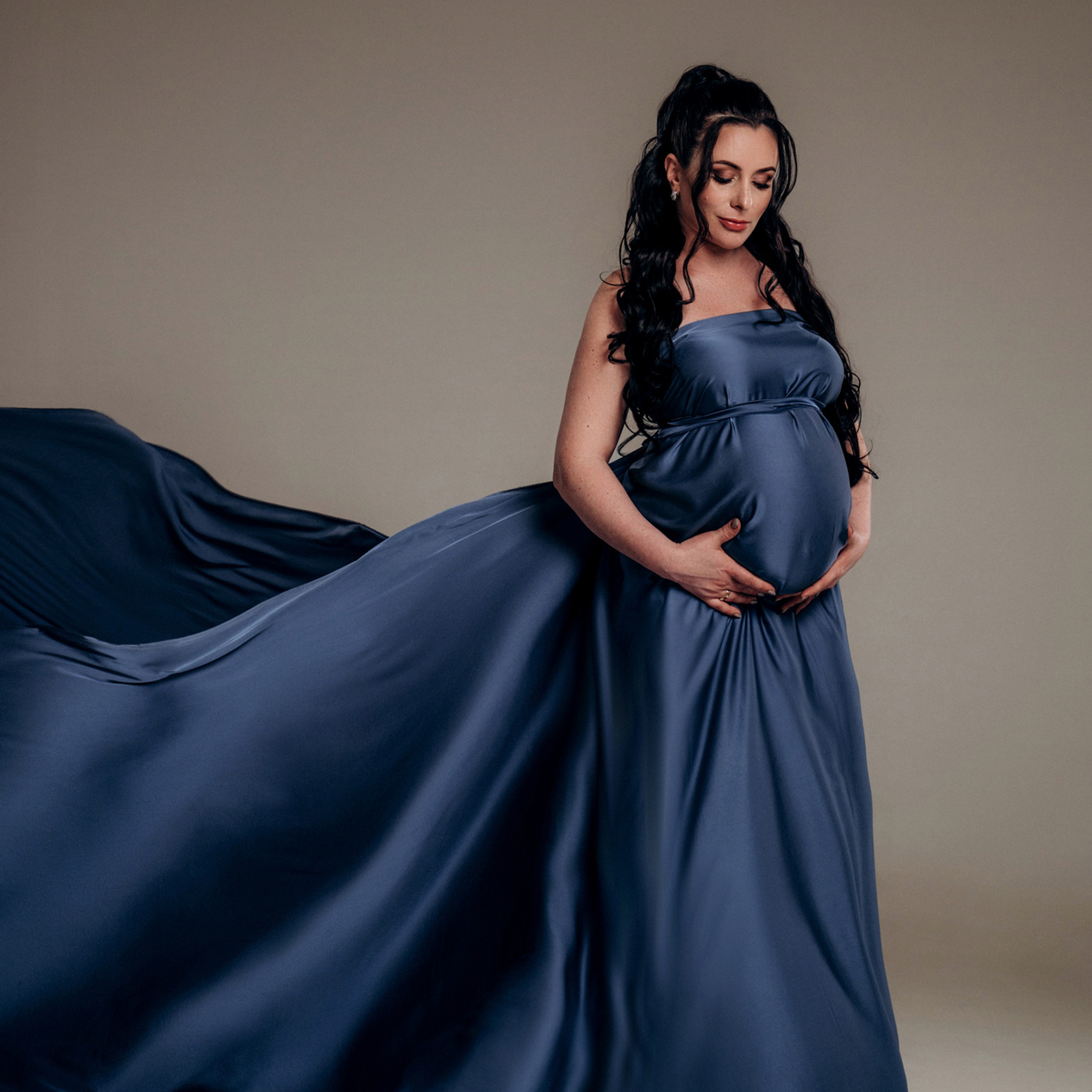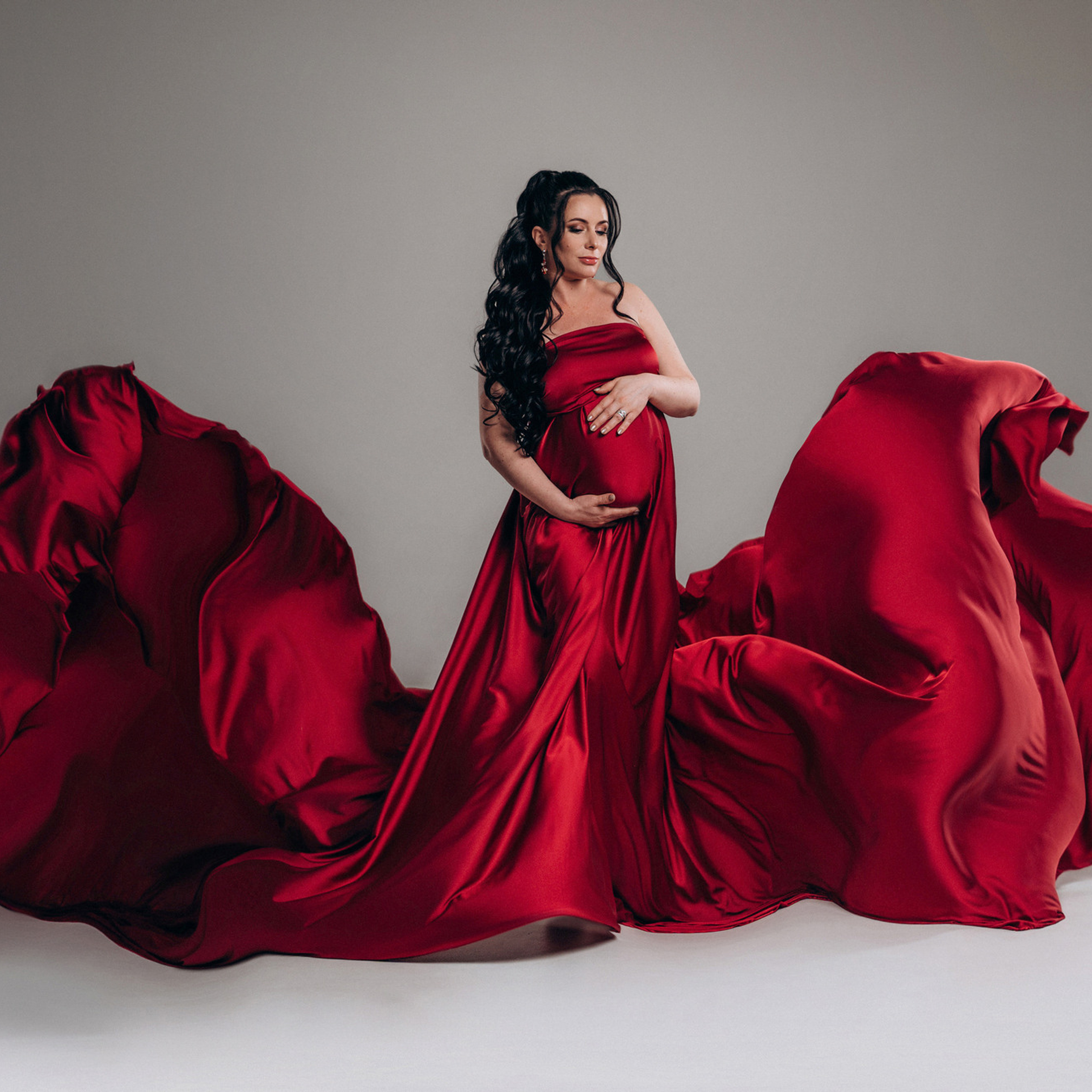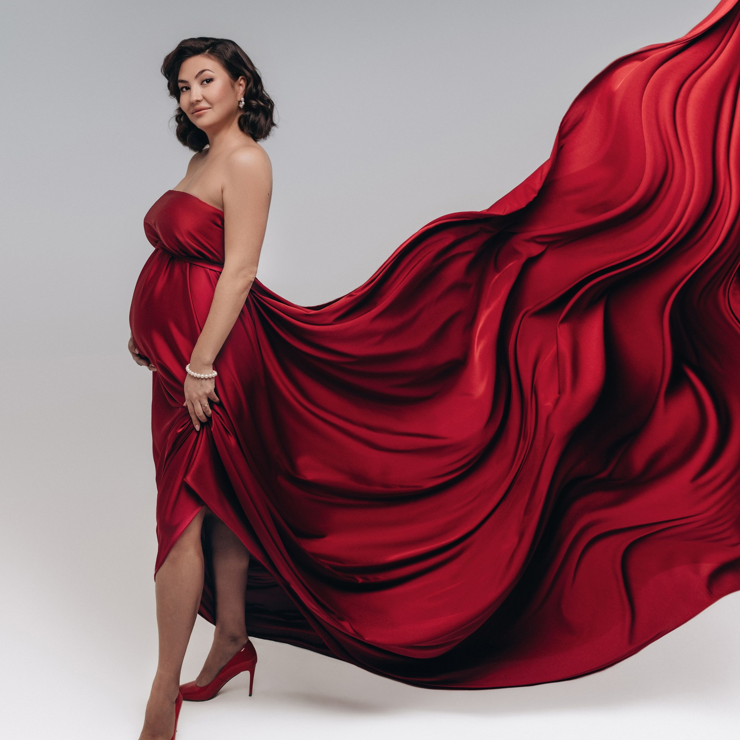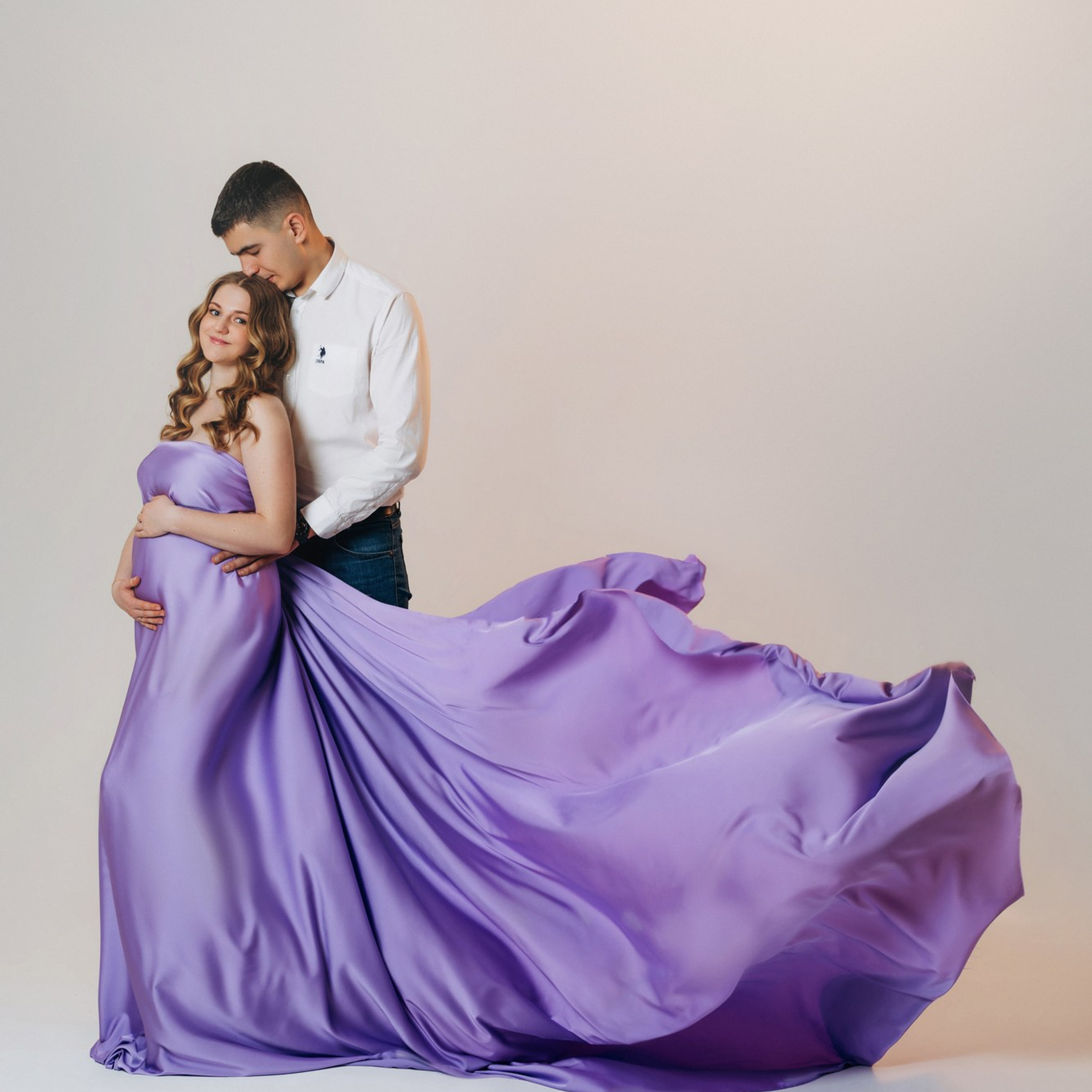 Нереально красивой получается ФОТОСЕССИЯ БЕРЕМЕННОСТИ на однотонном фоне и в летящих тканях в стиле Vogue. Такие фотографии на долго остаются вне времени.