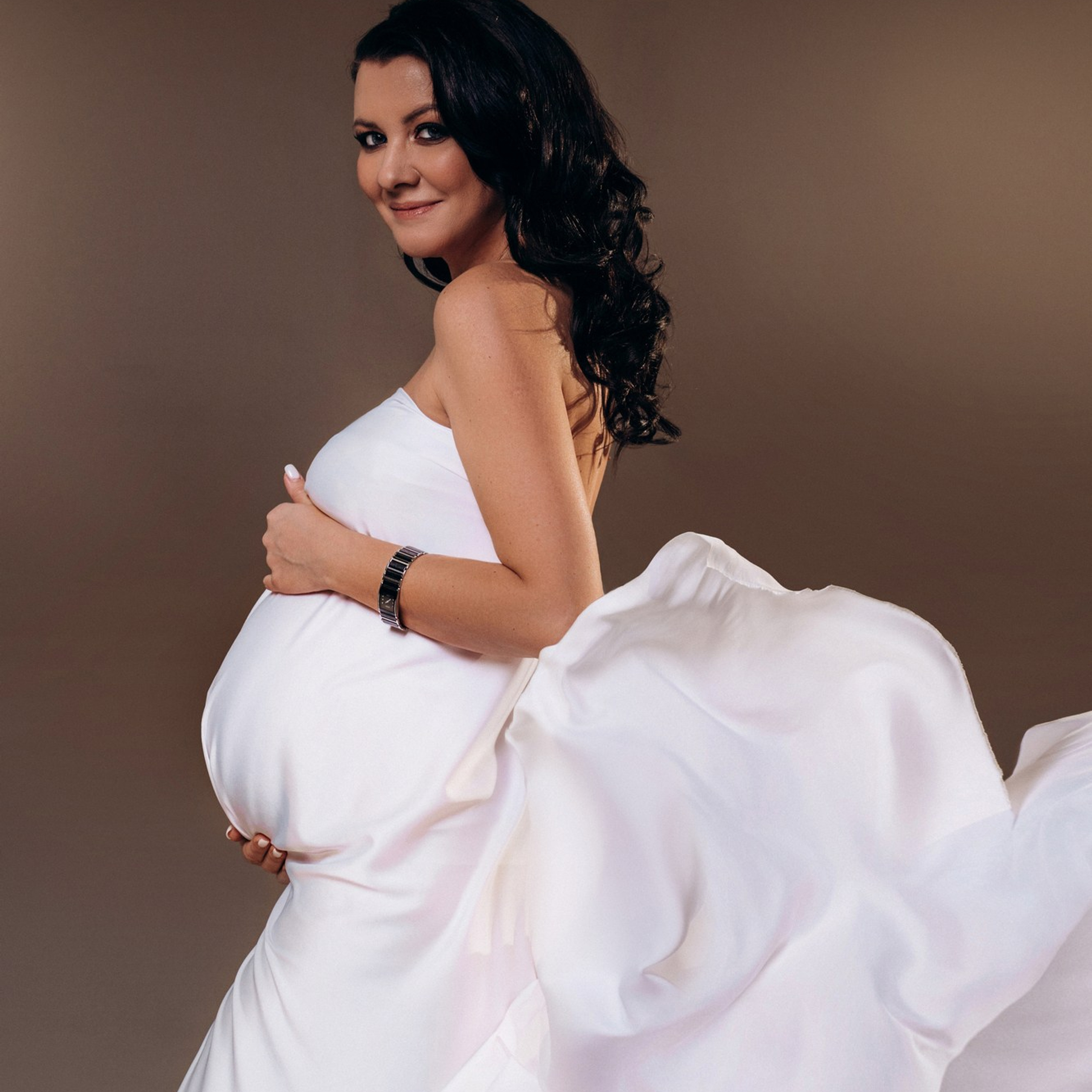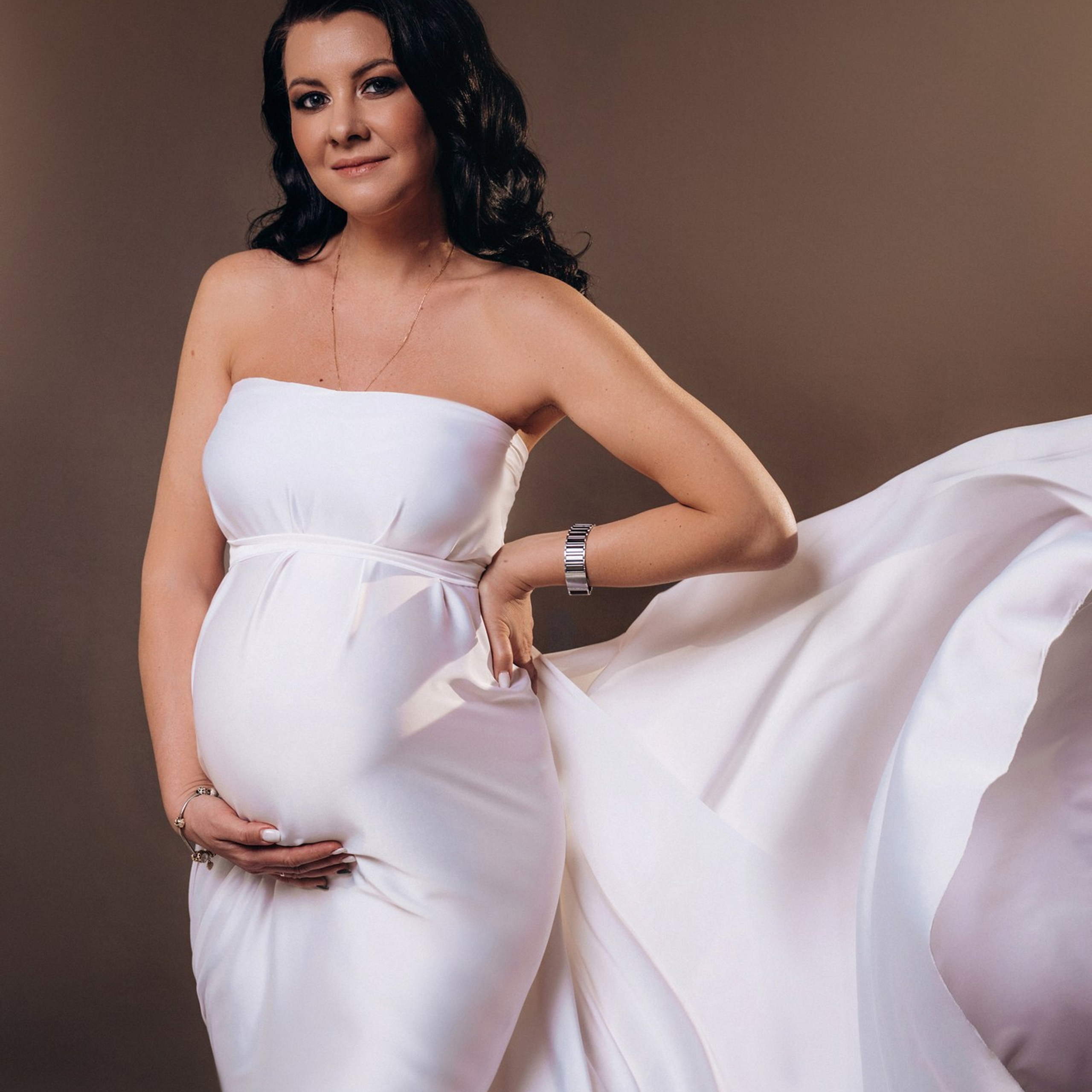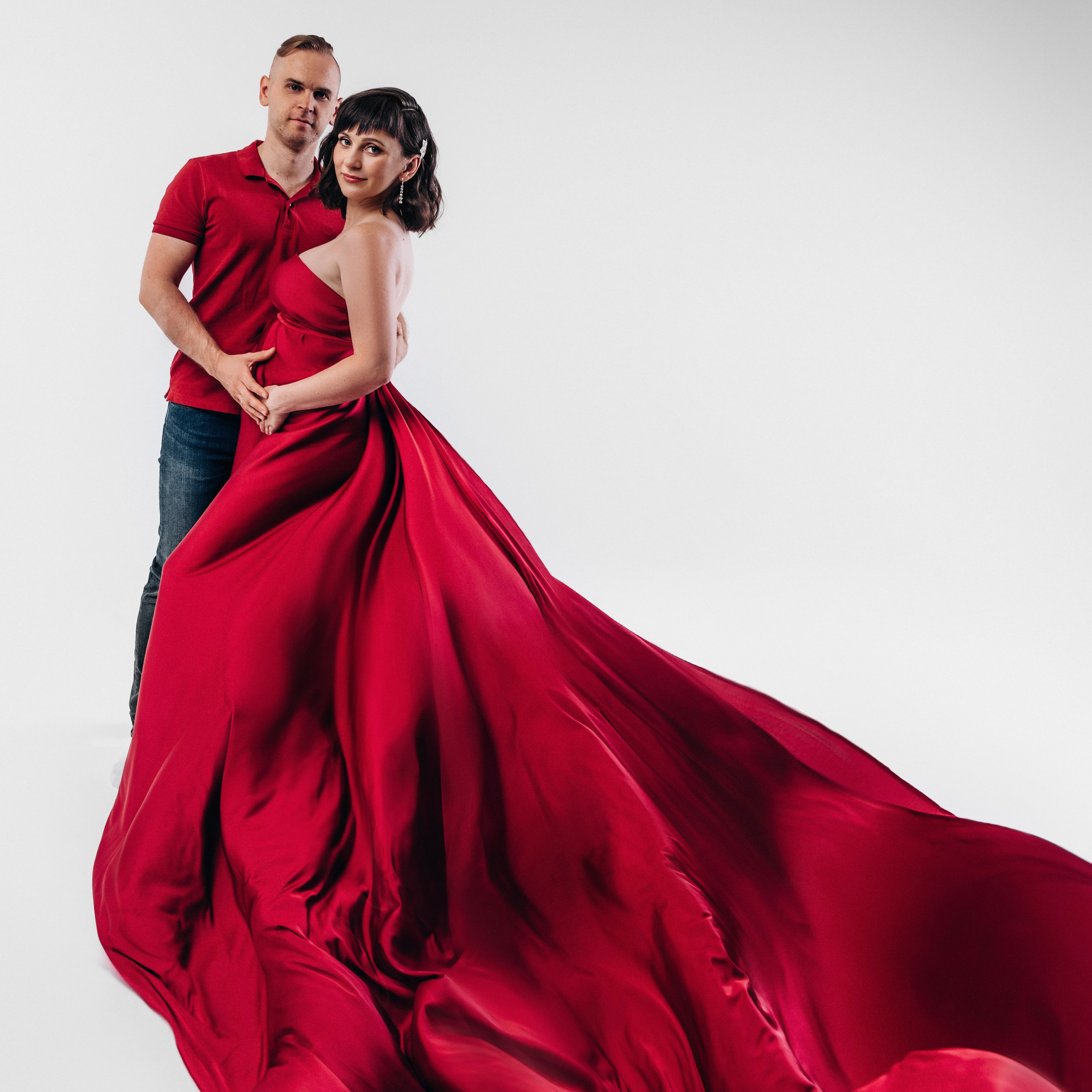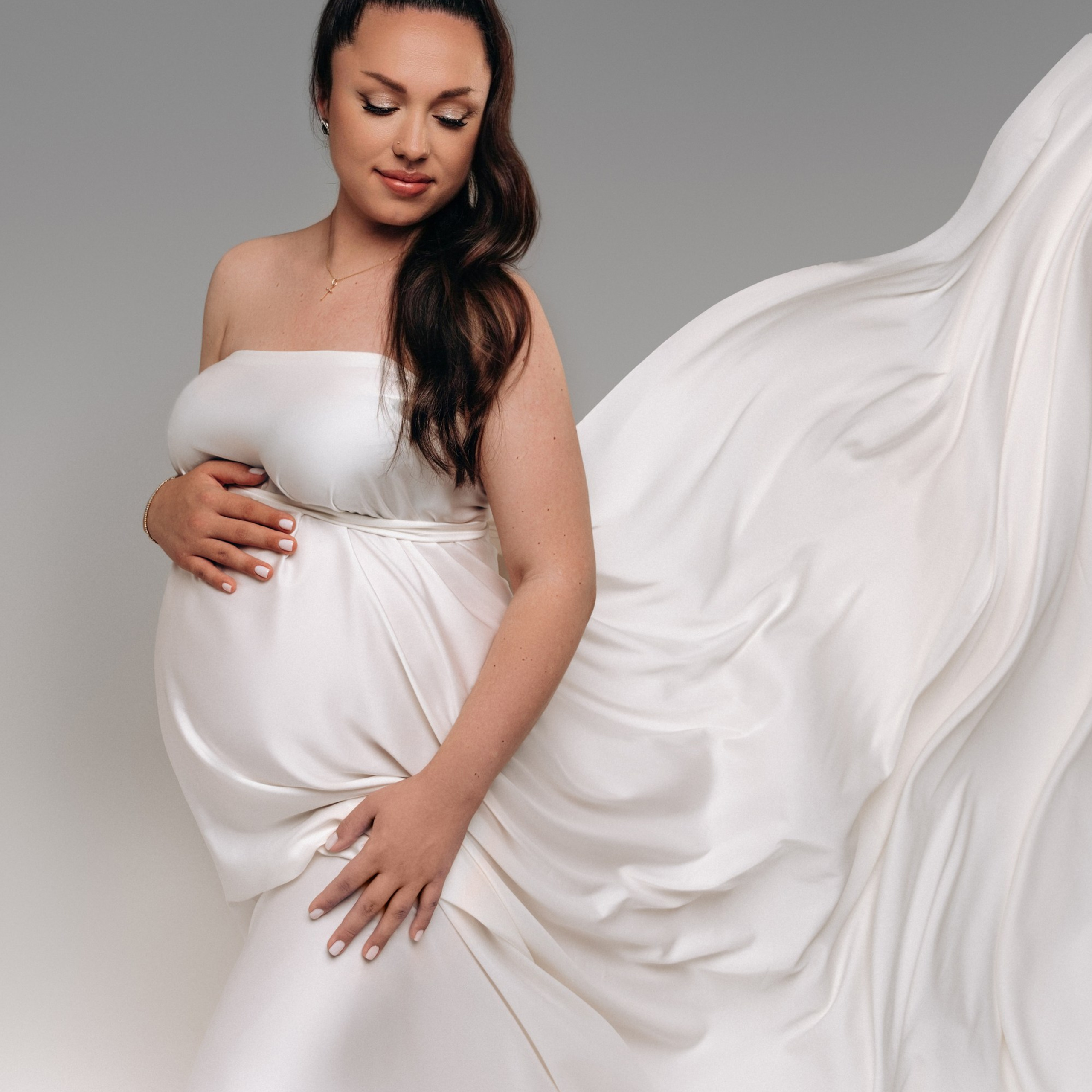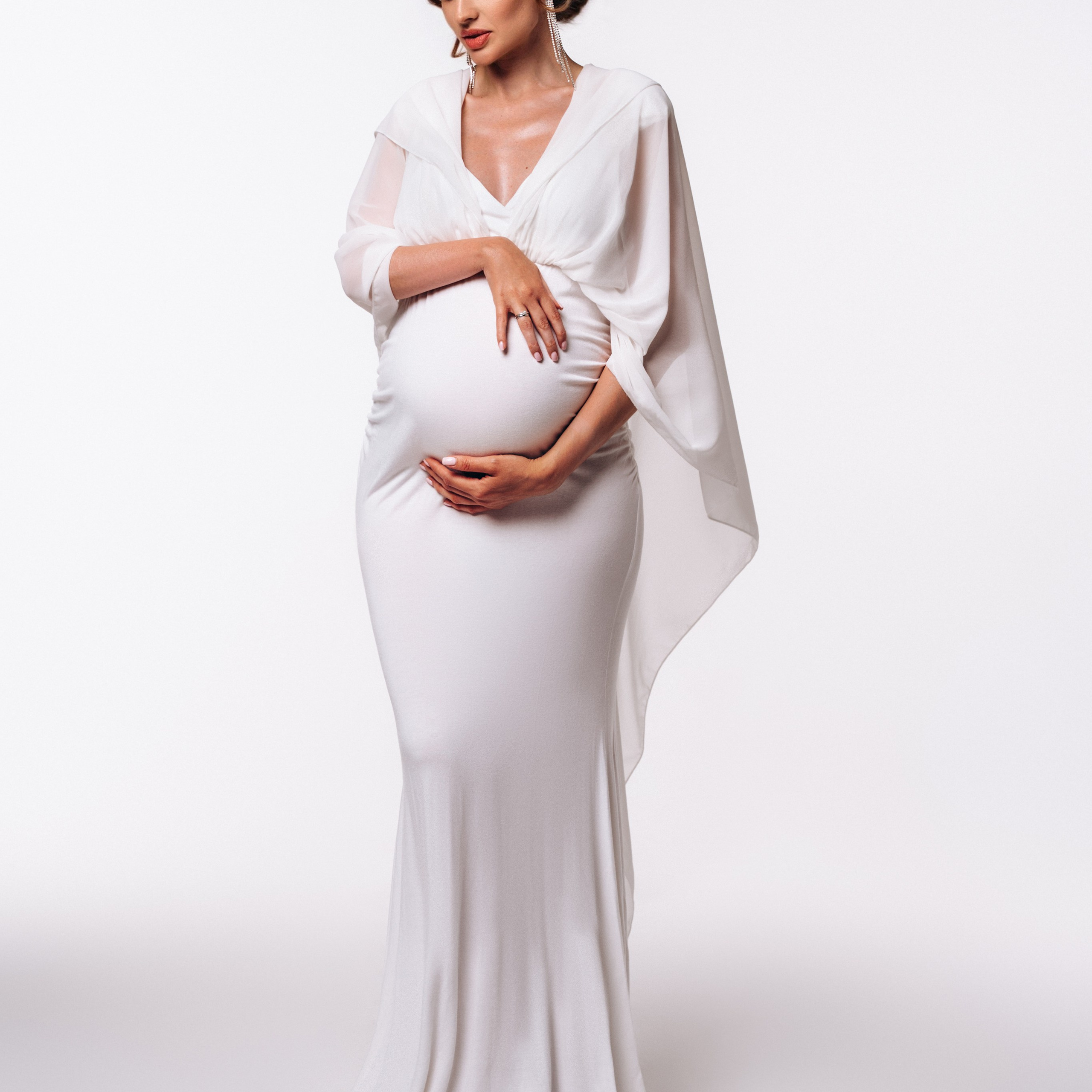 Нереально красивой получается ФОТОСЕССИЯ БЕРЕМЕННОСТИ на однотонном фоне и в летящих тканях в стиле Vogue. Такие фотографии на долго остаются вне времени.