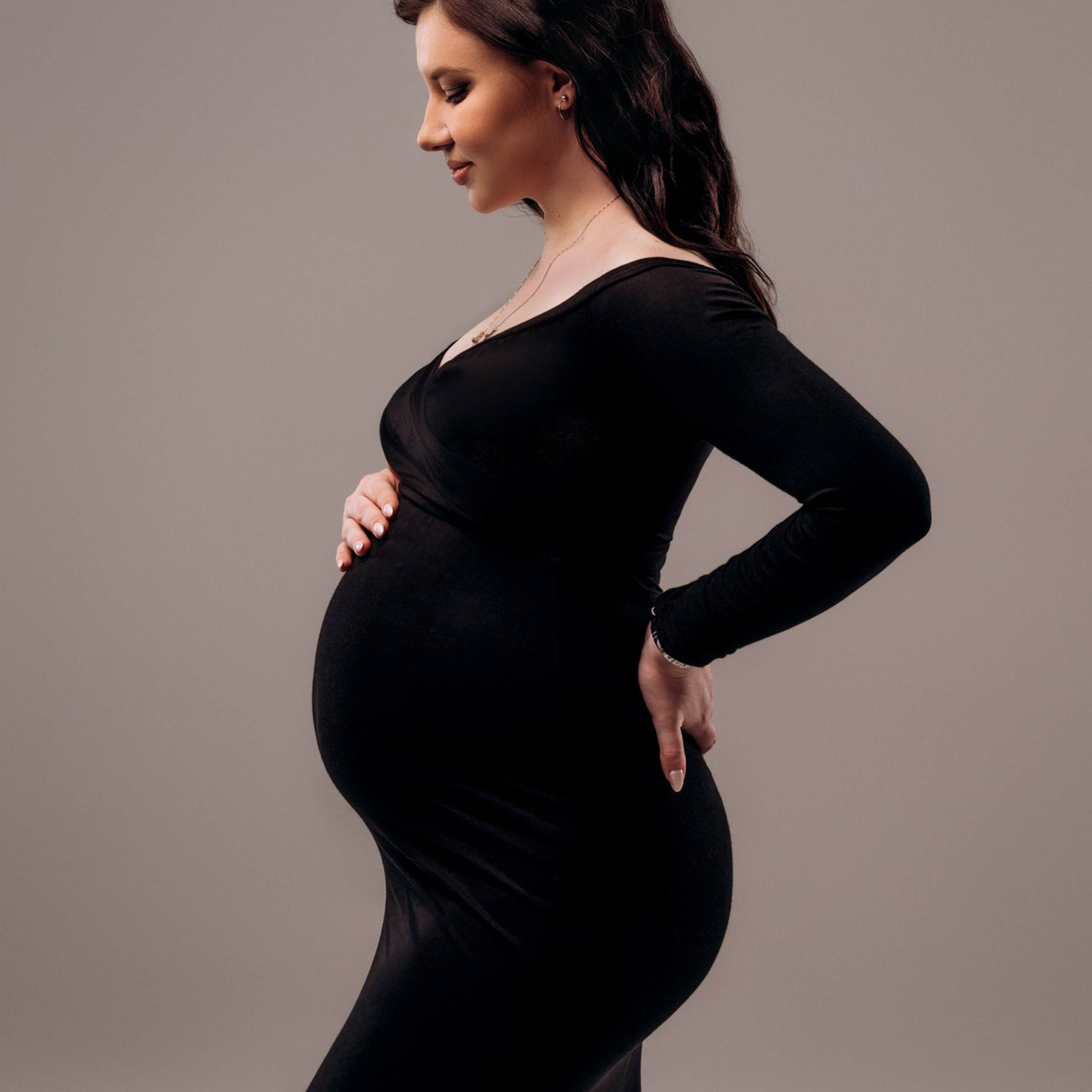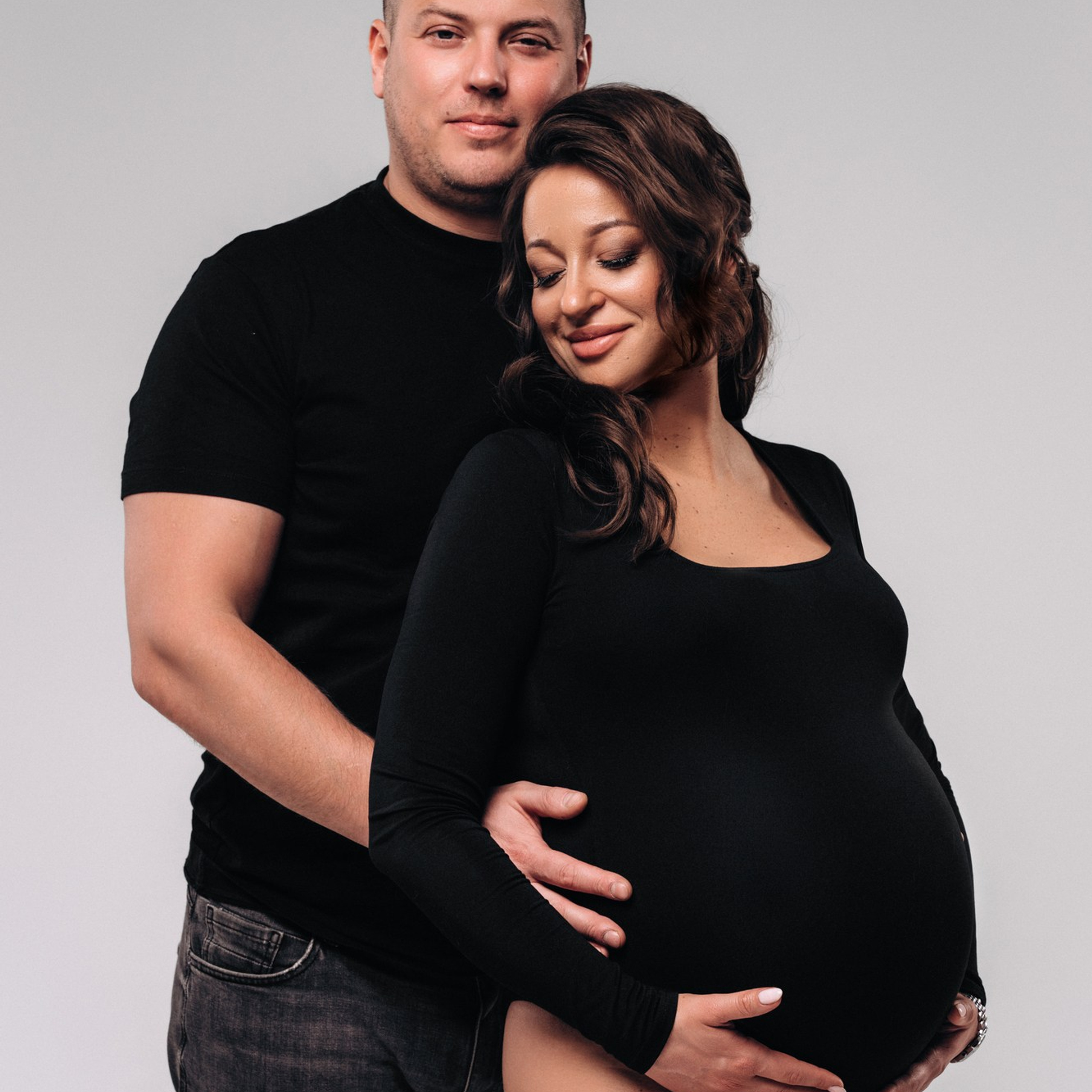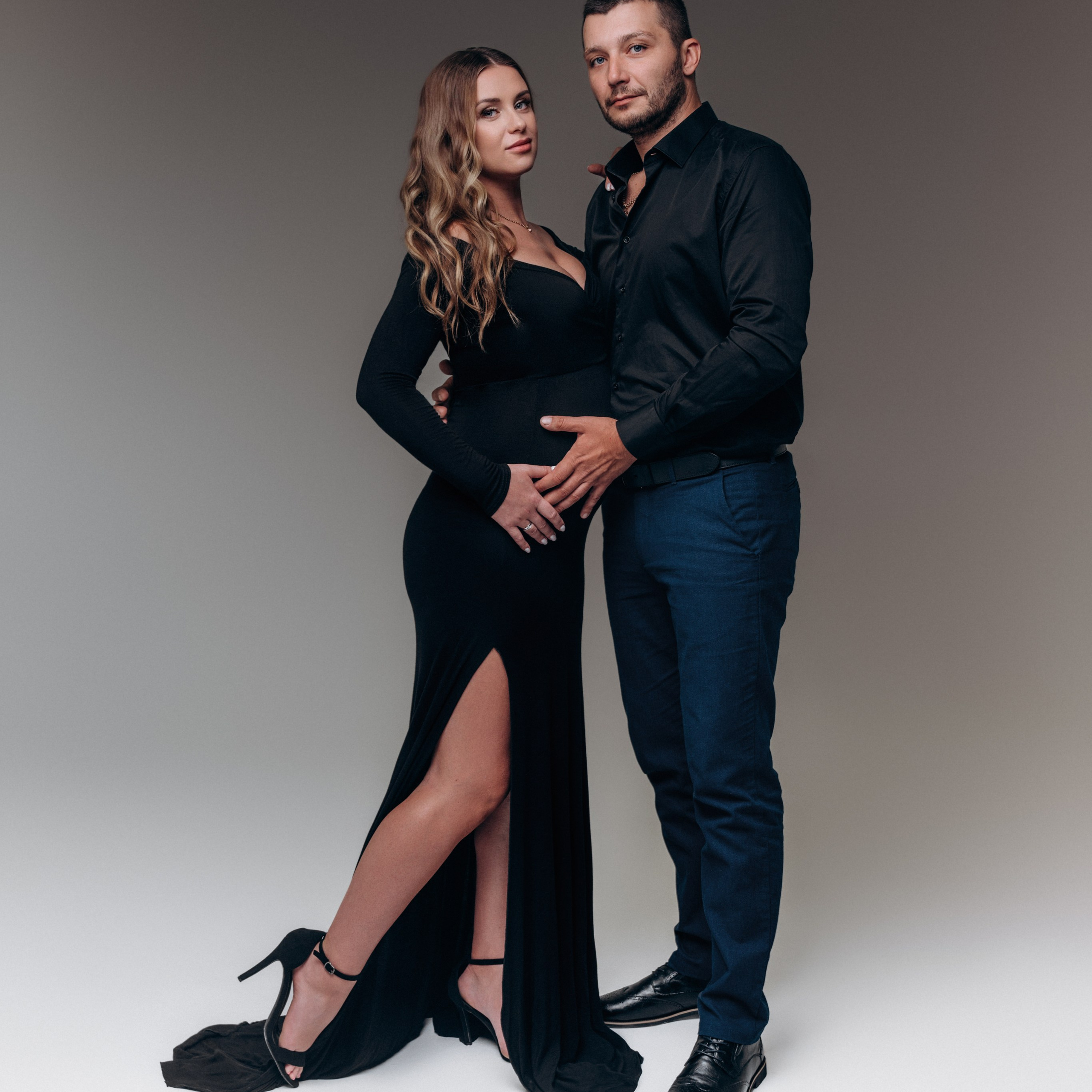 Одежда однотонная. Принт не должен отвлекать от самого главного — от Вас и округлившегося животика. Однотонная одежда и простые линии смотрятся стильно и со вкусом, прекрасно подходят для модной фотосессии на циклораме. Предпочтение отдаётся базовым цветам: черный, белый, бежевый, коричневый, бордо.