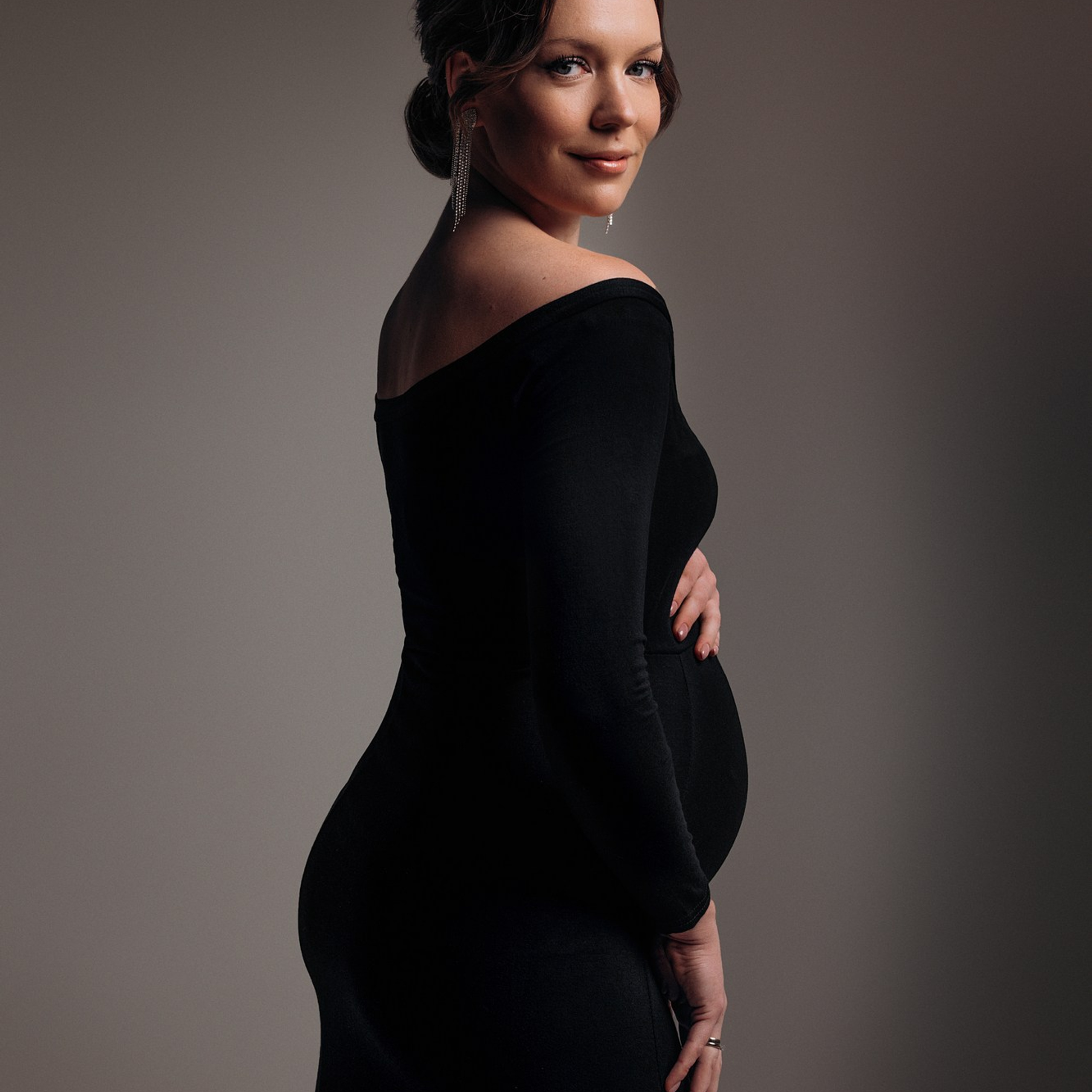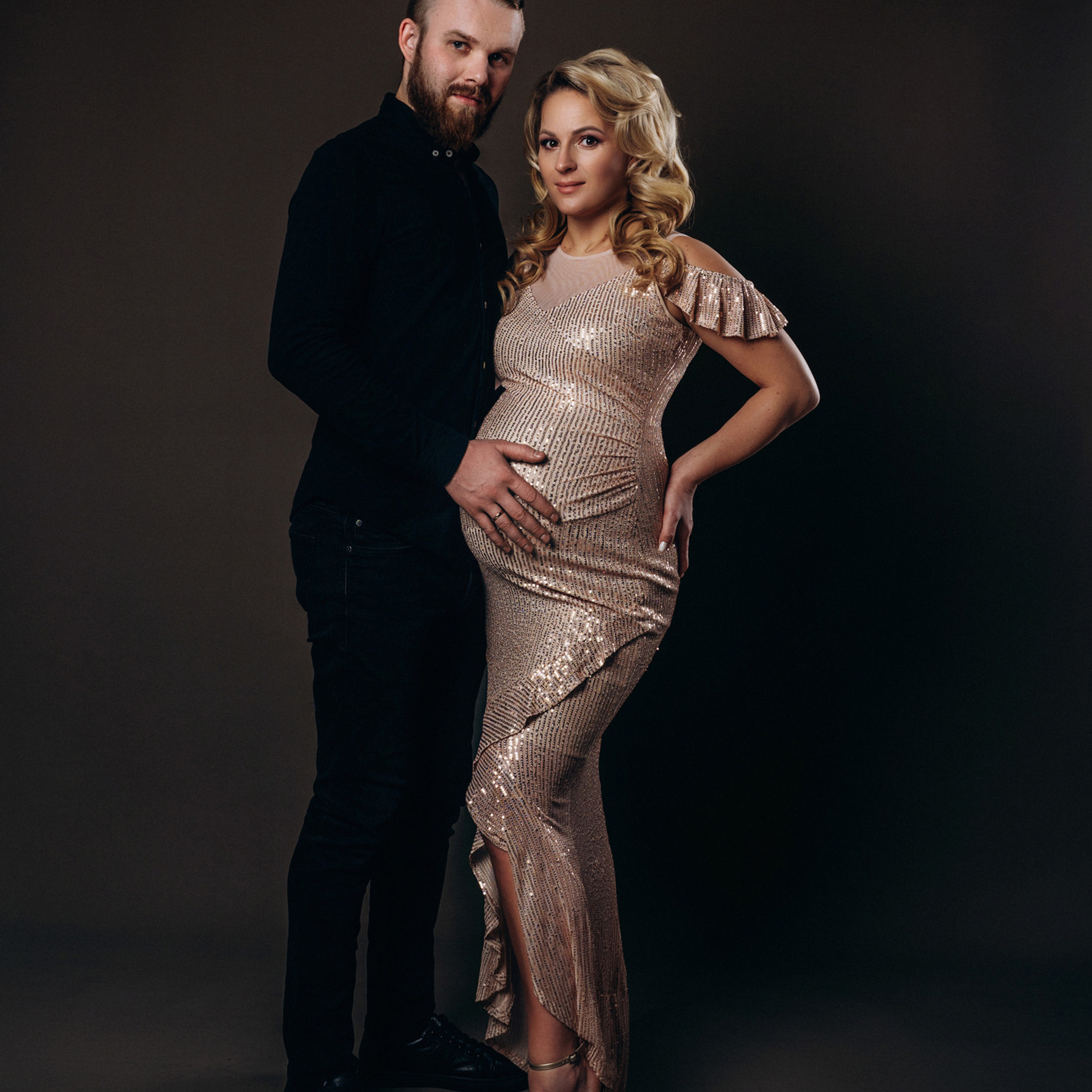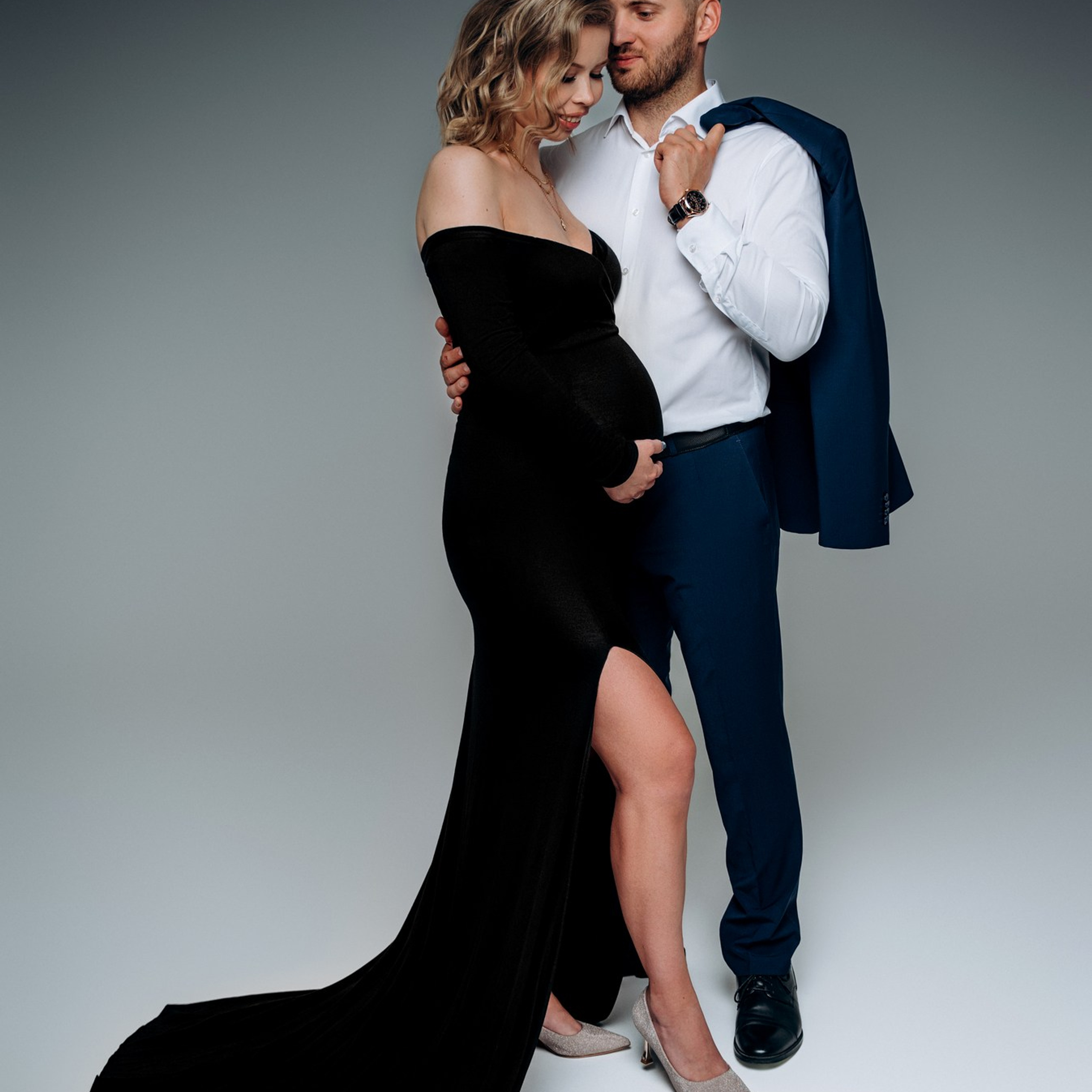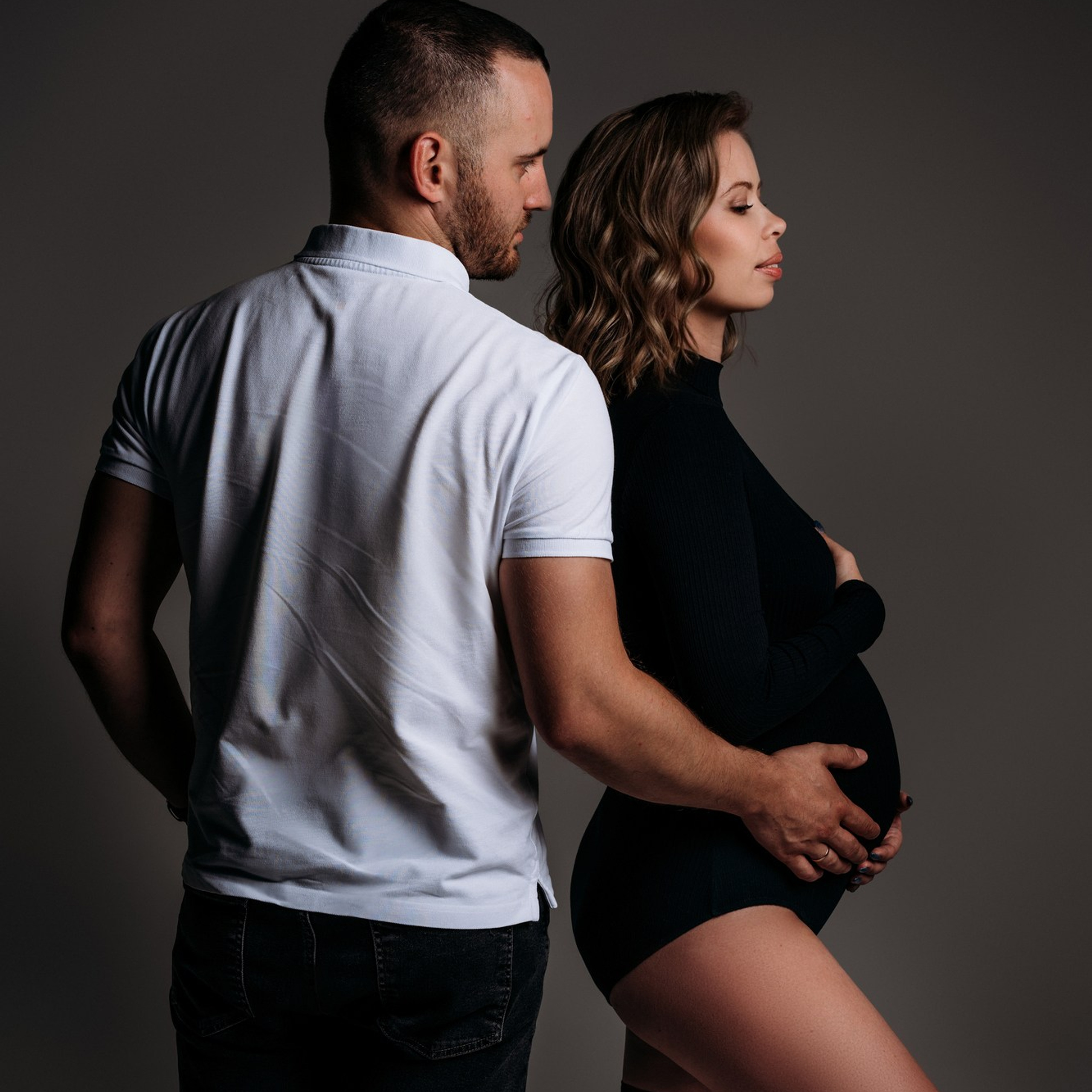 Одежда однотонная. Принт не должен отвлекать от самого главного — от Вас и округлившегося животика. Однотонная одежда и простые линии смотрятся стильно и со вкусом, прекрасно подходят для модной фотосессии на циклораме. Предпочтение отдаётся базовым цветам: черный, белый, бежевый, коричневый, бордо.